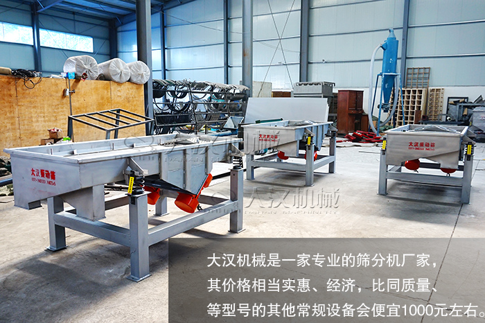 大漢機(jī)械是家專業(yè)的篩分機(jī)廠家,其價(jià)格相當(dāng)實(shí)惠、經(jīng)濟(jì),比同質(zhì)量、等型號(hào)的其他常規(guī)設(shè)備會(huì)便宜1000元左右。