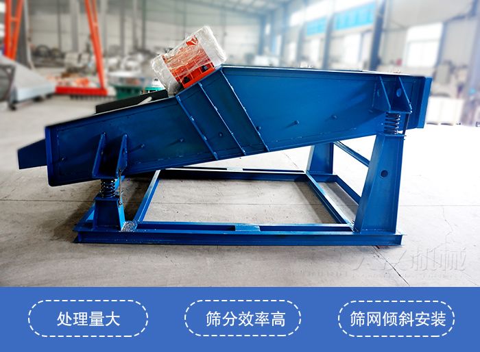 上振式直線振動(dòng)篩采用振動(dòng)電機(jī)做為激振源,調(diào)節(jié)振動(dòng)電機(jī)激振力的大小,可以改變篩機(jī)的振幅。